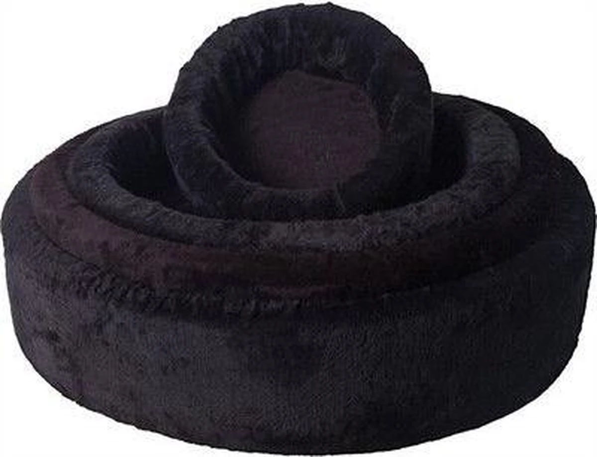 Rond honden bed met opstaande rand. De pluche hoes is afneembaar.