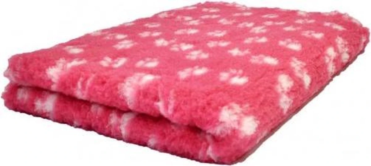 Vet Bed Fuchsia Met Witte Voetprint Latex Anti-Slip 150x100cm. Het zachte materiaal van dit vetbed slaat warmte op en laat water door. De onderkant van dit vetbed heeft een latex anti-slip laag en is wasbaar op 30 graden. Dankzij de stevige kwaliteit is dit vetbed ideaal voor alle soorten honden.